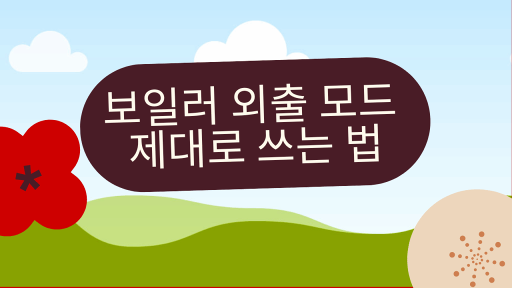 방을 완전히 식혔다가 다시 데우는 것보다, 살짝 낮은 온도로 천천히 유지하는 게 에너지 소모가 적습니다. 외출 모드는 난방수를 아주 낮은 온도로 돌려 결로·배관 동결을 막고, 재가동 시 과한 예열을 줄여줘요. 집을 비우는 동안 낮은 유지 → 돌아오기 전 자동 복귀가 핵심입니다.
